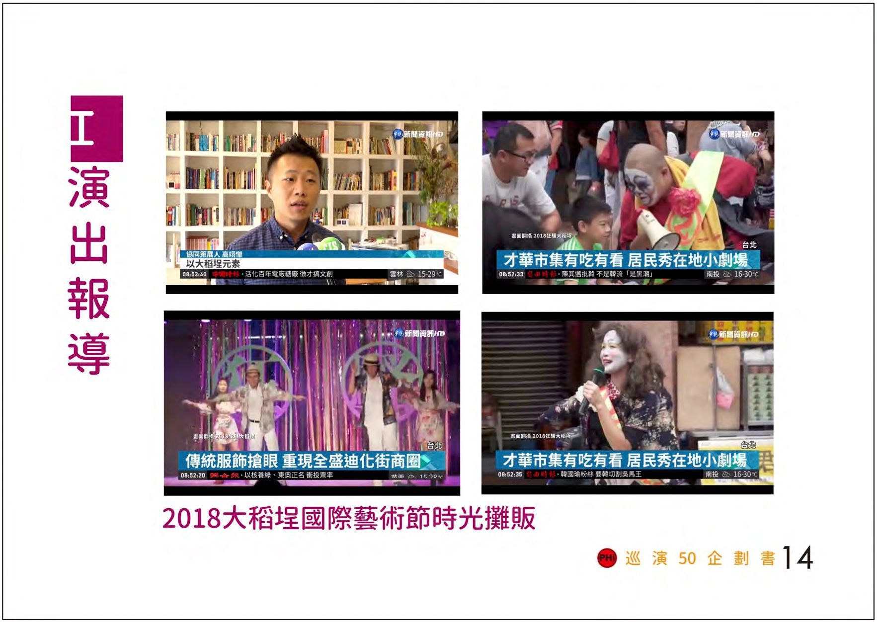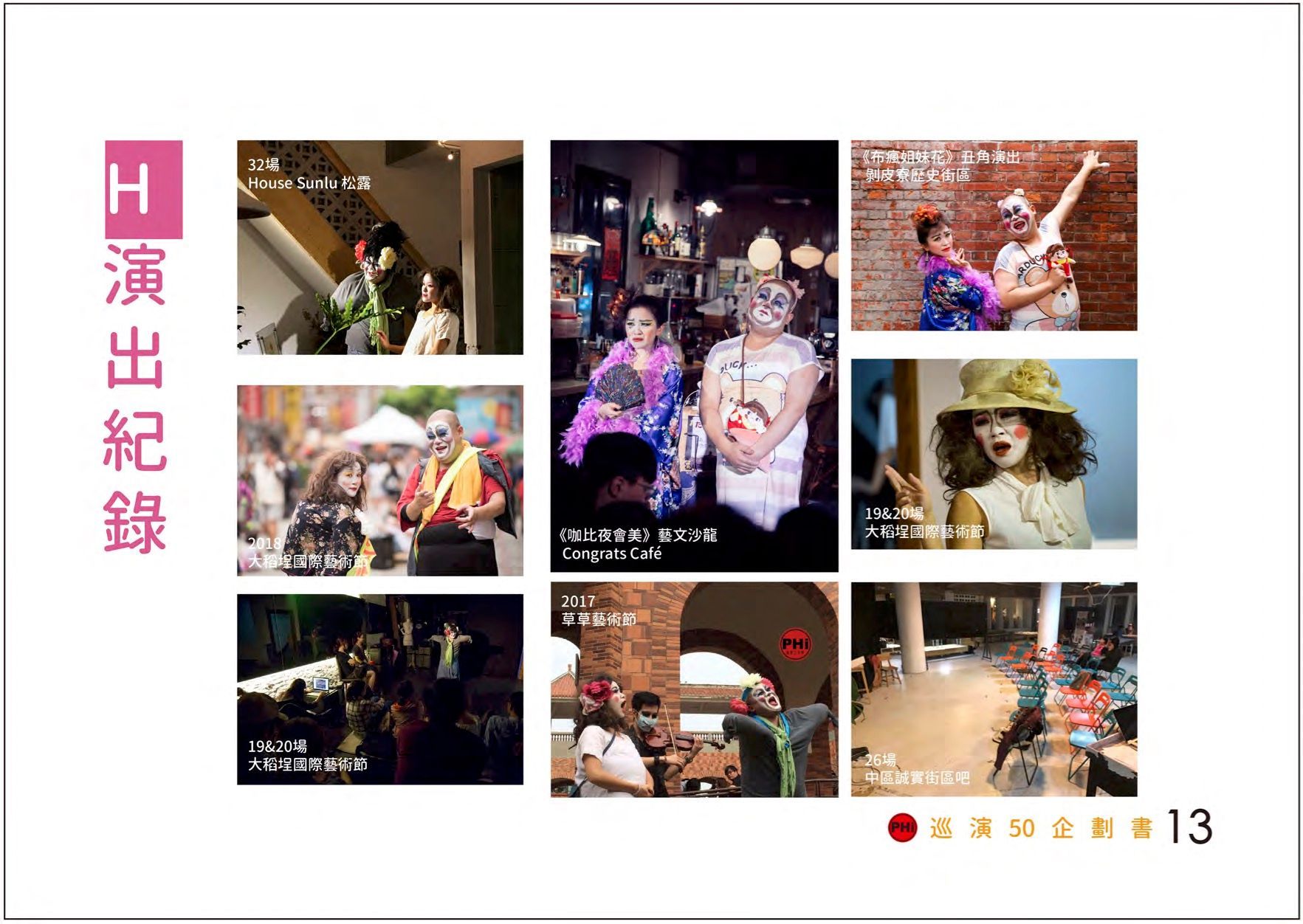 - 演出特色:丑角、諷刺、喜劇、互動、多段落演出、具備高度調整彈性。